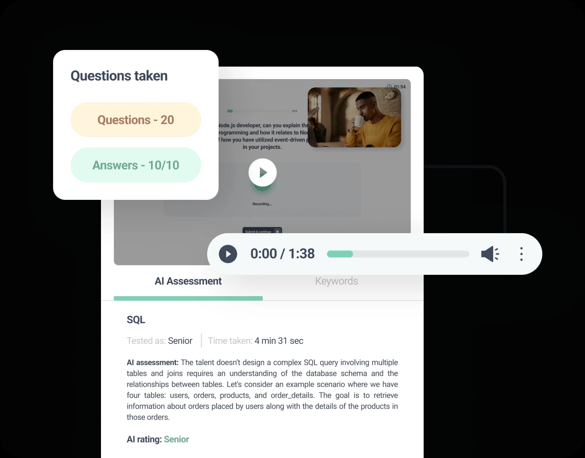 Conduct intelligent interviews with full transcripts and detailed candidate summaries powered by advanced AI