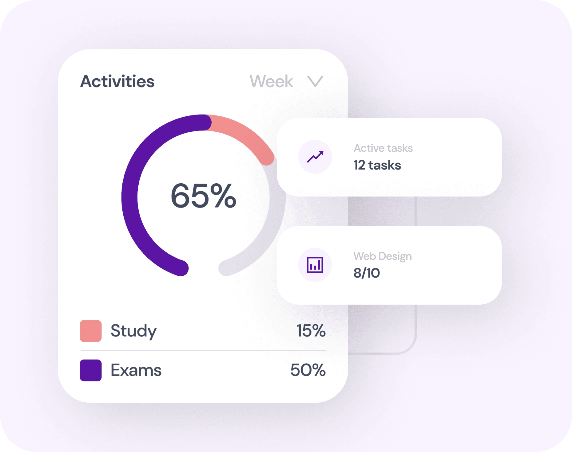 Stay organized with our custom dashboard. Monitor your weekly activity, course progress, application history, and task completion—all in one place.